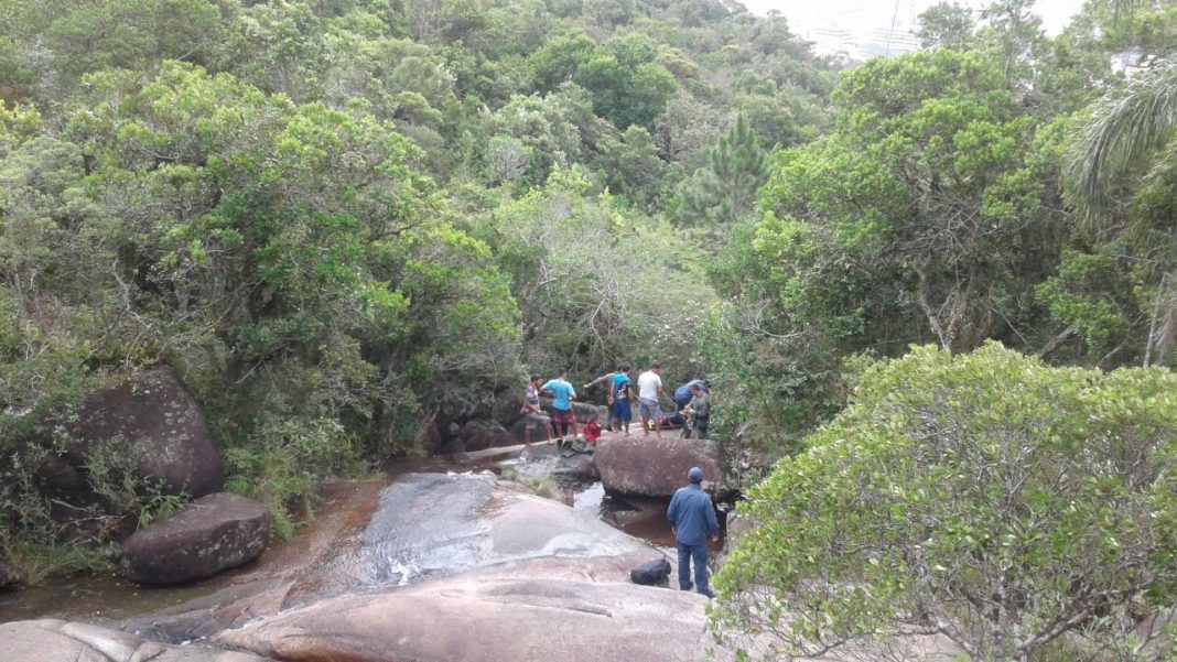 Santa Catarina – No dia 14/02, um homem de cerca de 30 anos precisou ser resgatado pelo Corpo de Bombeiros como o apoio do helicóptero Águia 2 do Batalhão de Aviação da Polícia Militar, após cair entre duas pedras ao tentar pular em uma cachoeira, no Saco Grande.