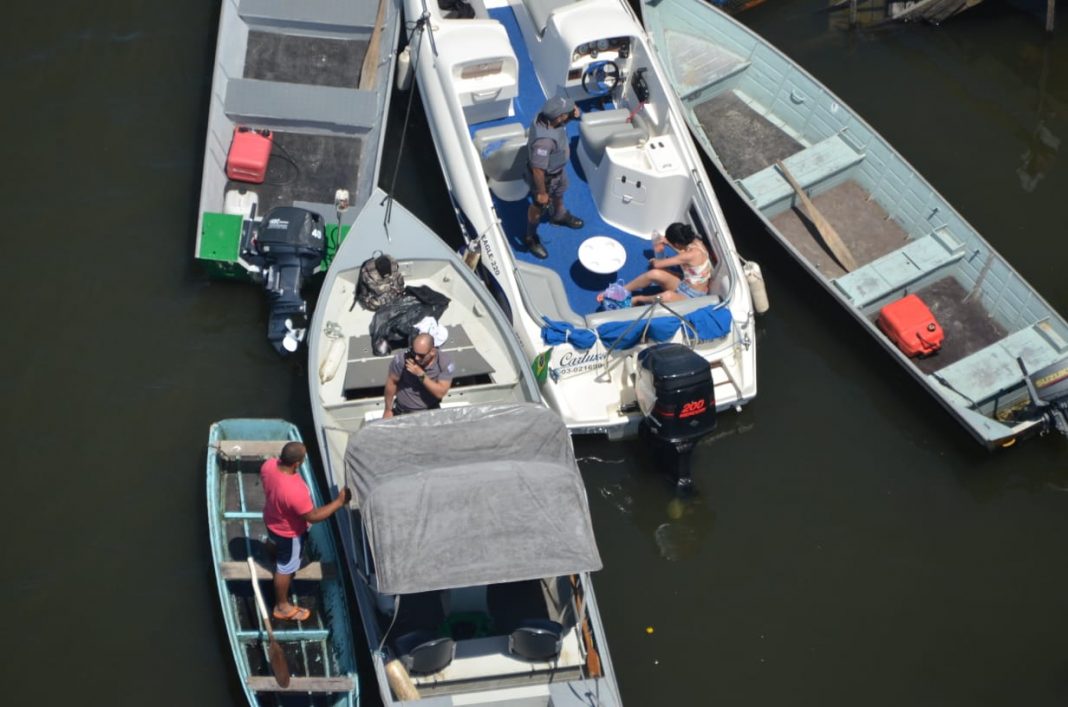 Policiais Militares do Policiamento Ambiental Marítimo do 3° Batalhão de Polícia Ambiental do Estado de São Paulo realizavam patrulhamento marítimo nas proximidades e entorno da comunidade conhecida como “vila dos pescadores” munícipio de Cubatão, no litoral Paulista, com o intuito de coibir a pirataria e demais ilícitos na região.