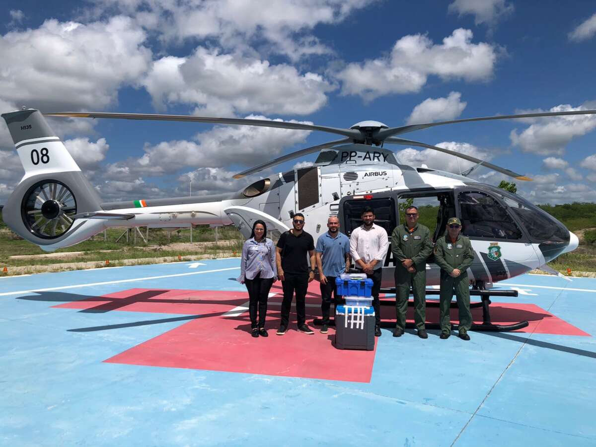 O órgão foi transportado pelo helicóptero da Coordenadoria Integrada de Operações Aéreas (Ciopaer), da Secretaria da Segurança Pública e Defesa Social do Estado do Ceará
