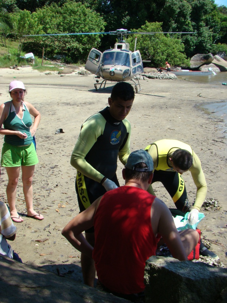 Santa Catarina – Homem ferido foi resgatado domingo dia 31 na ilha grande, que fica na Baia da Babitonga em São Francisco do Sul.