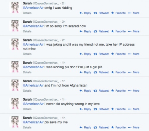 Uma menina de 14 anos “tuitou” a seguinte mensagem endereçada à American Airlines: