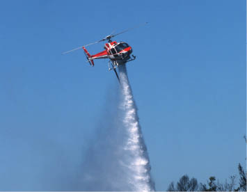 Um AStar joga água sobre incêndio. Foto: Airbus Helicopters