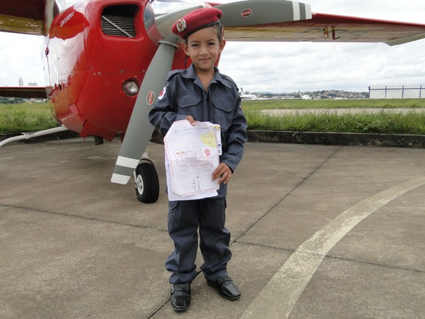 “Muita felicidade”, disse ao chegar no hangar, depois de observar as aeronaves e ser recebido por pilotos. Perguntado sobre como surgiu o desejo de ser um deles, Peterson respondeu que já viu bombeiros “salvando vidas”. De acordo com a mãe, Vanessa Alves Ferreira, 29 anos, ele manifesta o encantamento pela profissão desde que começou a falar. Ela apoia e demonstra orgulho. “Profissão linda e gratificante. Eu acredito no sonho dele”, disse.