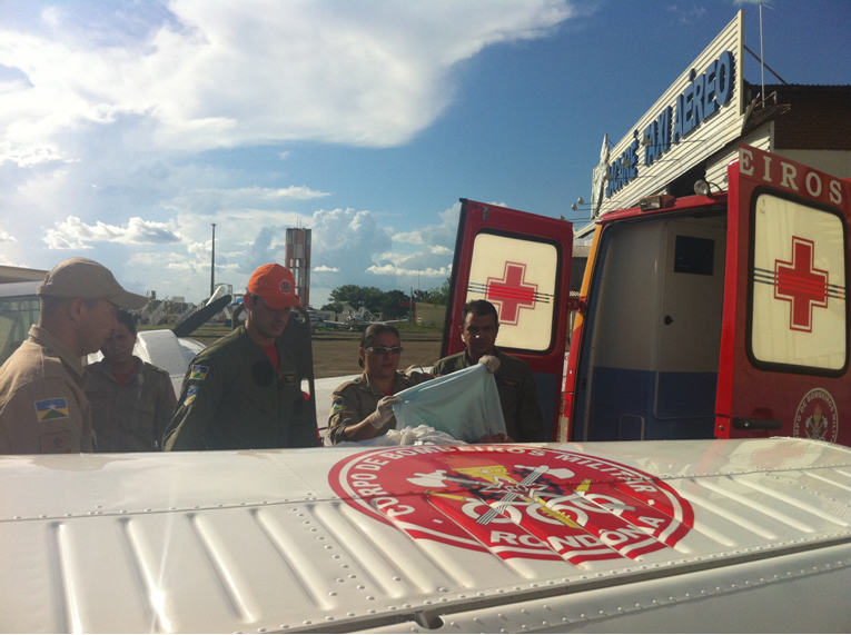 Assim, por volta das 06:00h, do dia 31 maio de 2012, a equipe do Grupo de Operações Aéreas do CBMRO, composta pelo MAJ BM LEAL, TEN BM MAIA, CB BM ALINE (enfermeira) e do Funcionário Civil LOURENÇO NETO, Comandante da Aeronave, decolaram da cidade de Porto Velho-RO com destino a cidade de Itaituba-PA, onde realizou reabastecimento.