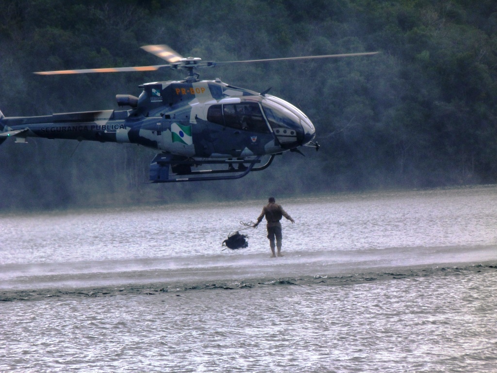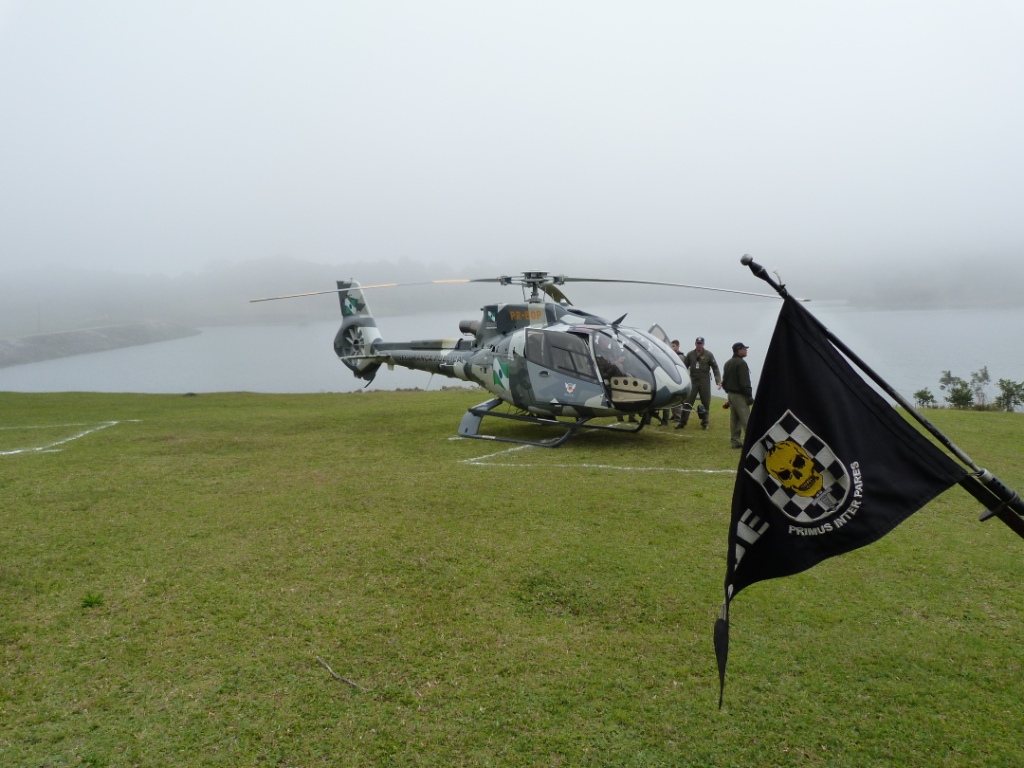 Na última quinta-feira à noite, dia 16, os alunos passaram por instruções teóricas, no hangar do Grupamento, a respeito das aeronaves em operação, bem como sobre técnicas de embarque e desembarque a baixa altura, rapel, helo casting, dentre outras. O Objetivo foi prepara-los para o dia seguinte, quando efetuaram treinamentos práticos na área da represa de Mananciais da Serra, região de Curitiba, inclusive com exercícios na água.