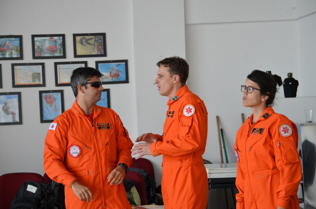 Cada equipe de atendimento é composta pelo piloto, que é um capitão do Corpo de Bombeiros, o tripulante, que também é do Corpo de Bombeiros, e a equipe do Samu, sempre formada por um médico e um enfermeiro.