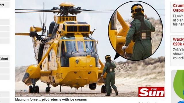 Inglaterra – Um helicóptero “Sea King” de resgate da Força Aérea Real (RAF) fez uma parada “de emergência” na praia de Winterton-on-Sea, em Norfolk, na Inglaterra. Dois militares saíram da aeronave, em direção a uma lanchonete. Pegaram quatro picolés, acenaram para os banhistas, e levantaram voo novamente.
