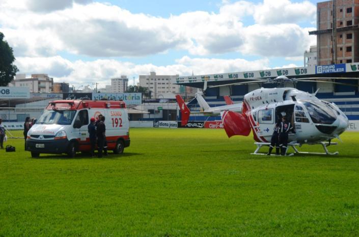 O rapaz estava internado no Hospital Regional Antônio Dias desde o dia 31/05. Uma Unidade de Atendimento Avançado do SAMU levou a vítima, um rapaz de 28 anos, para o estádio. Ele foi colocado na aeronave, que levantou voo para Belo Horizonte.
