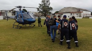 O Sargento da Polícia Militar, Vantuir Nascimento da Silva, de 43 anos, lotado na 4ª Companhia de Maricá, foi transferido de helicóptero do Hospital Municipal Conde Modesto Leal para o Hospital Central da Polícia Militar (HCPM), no município do Rio.