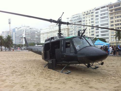 Uma cena inusitada chamou a atenção de quem passava pela Praia de Copacabana, na Zona Sul, na manhã desta quarta-feira. Uma equipe conjunta de policiais civis e militares sobrevoava o local em um helicóptero blindado quando voltava de um treinamento de piloto sobre a Baía de Guanabara e avistou um tumulto no calçadão.