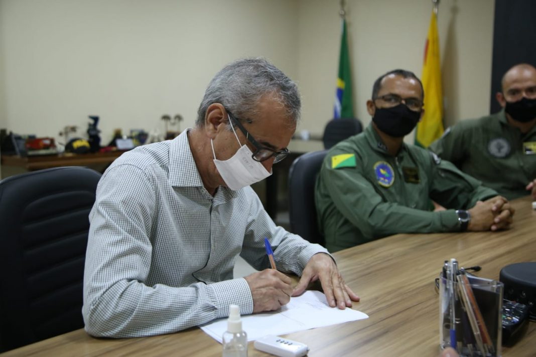 Do ato de assinatura do Termo de Cooperação Técnica, que aconteceu na sede da Sejusp, também participaram o secretário adjunto da Pasta, Maurício Pinheiro, os pilotos Jonas Pereira, Izandro Brito, Felipe Thomas e Alisson Peres, todos do Centro Integrado de Operações Aéreas (CIOPAER/AC).