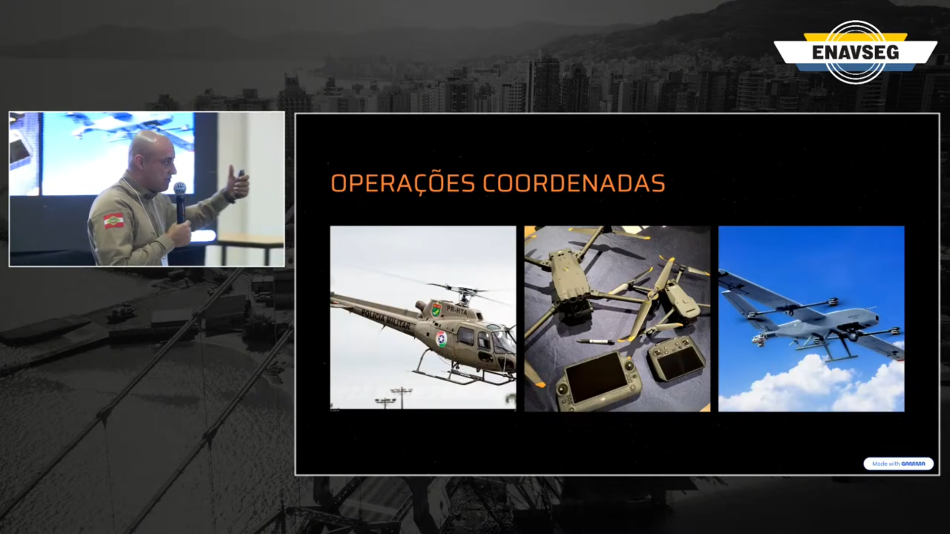 Essa transformação foi apresentada de forma direta pelo Capitão da Polícia Militar de Santa Catarina, Felipe Santos Silva, durante sua palestra no ENAVSEG 2025, o maior evento de aviação de segurança pública do país. Antigo Chefe da Coordenadoria Técnica de Aeronaves Remotamente Pilotadas da PMSC, piloto remoto licenciado pela ANAC, o oficial compartilhou não apenas números e projetos, mas a trajetória real — com erros, resistências e acertos — da consolidação dos drones como ferramenta estratégica na Polícia Militar catarinense.