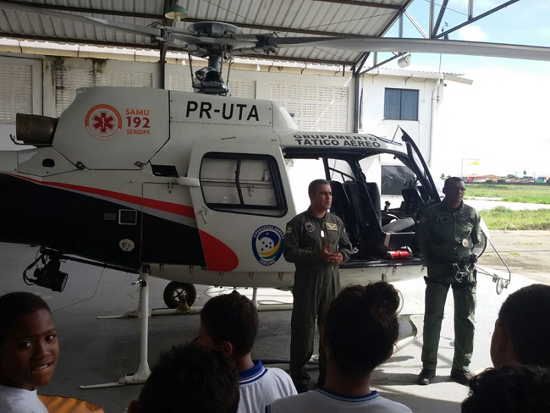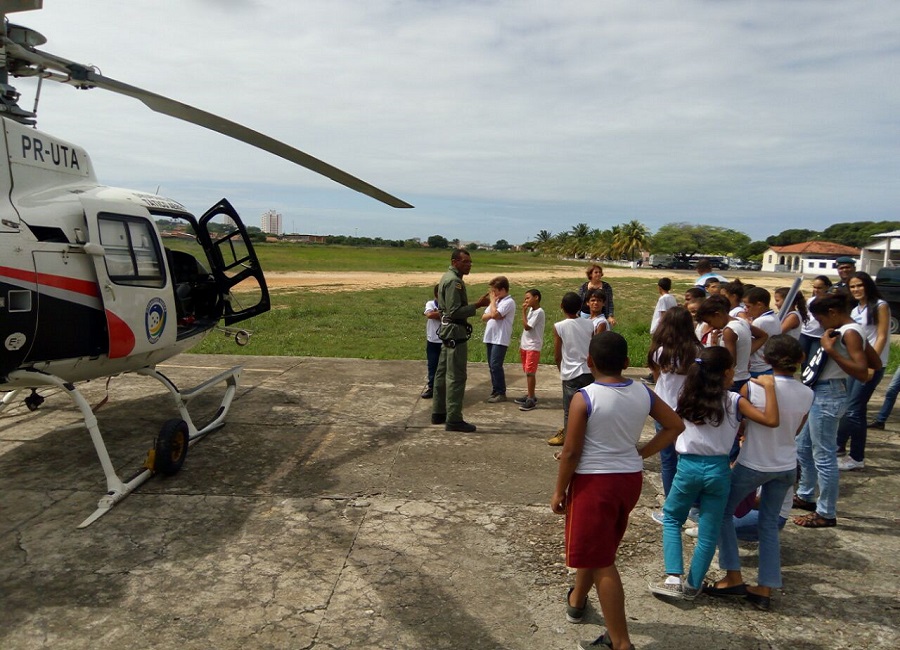 Os estudantes do 5º ano estavam acompanhados por professores e pelos policiais “proerdianos”, Sargento Custódio e Cabo Alex. Na ocasião, tiveram a oportunidade de conhecer a unidade que é responsável pelas operações aeropoliciais, de resgate e defesa civil no Estado de Sergipe.