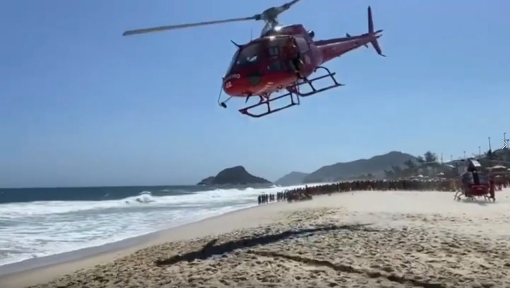 GOA/CBMERJ utiiza helicópteros para tirar banhistas do mar em prevenções de toda a orla do território fluminense