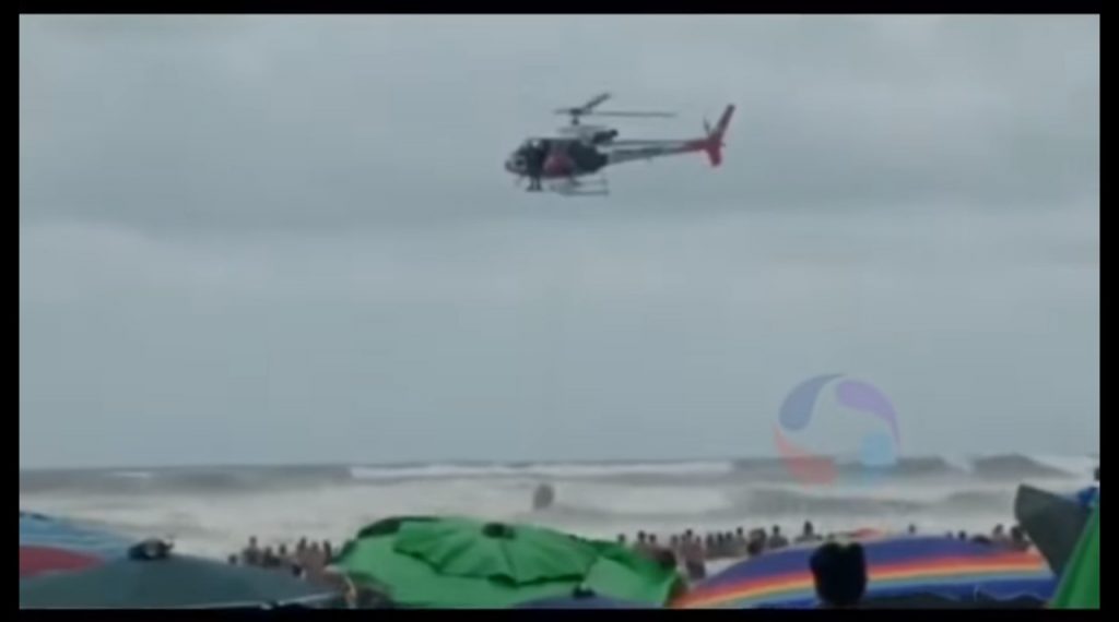 CAv/PMESP – Guarda vidas realizam resgate aquático em Praia Grande/SP
