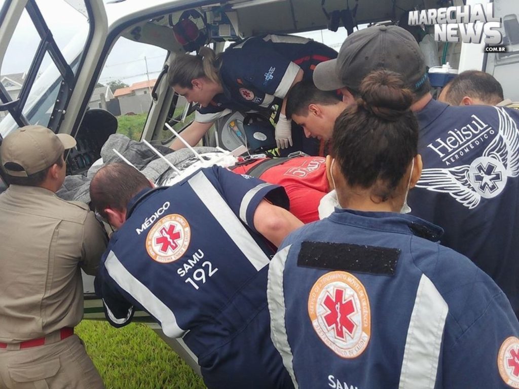 Vítima de queda de telhado é transferido para Toledo com Helicóptero do SAMU