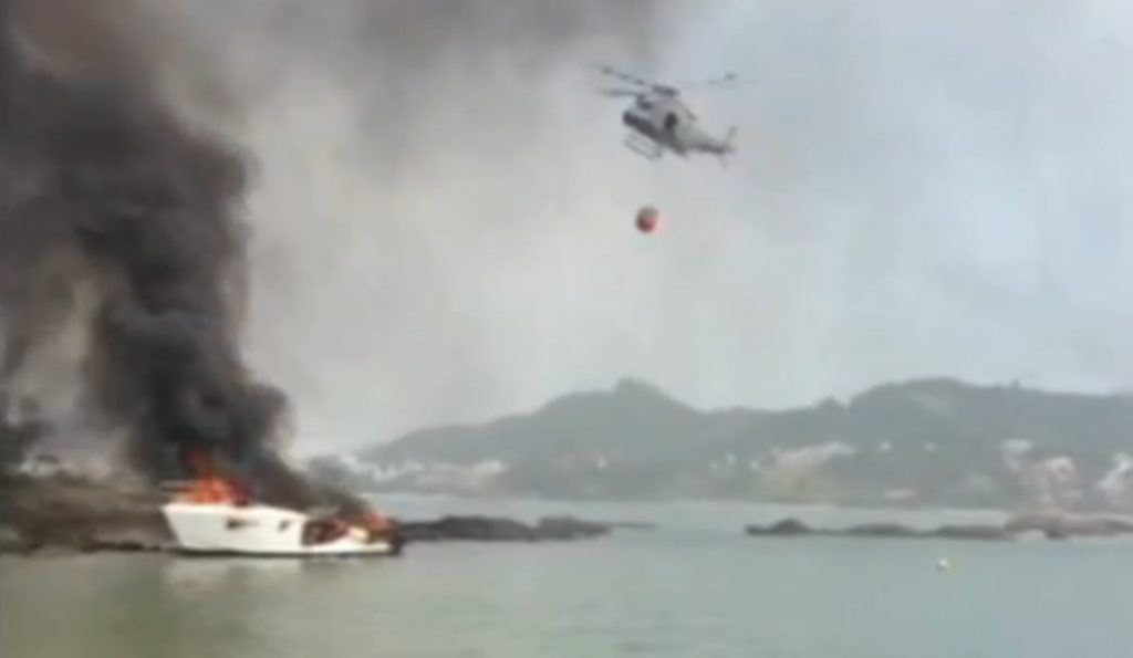 Águia 02 do BAPM combate incêndio em lancha na Ilha do Francês, em Florianópolis