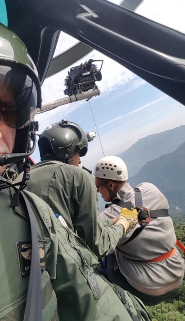 Helicóptero da PM apóia Corpo de Bombeiros e retira vítima da mata com uso do guincho