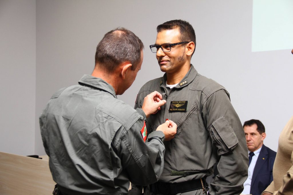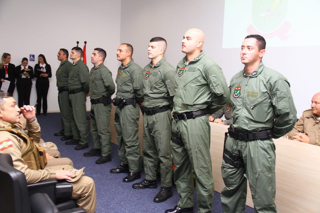Na solenidade, oficiais e praças foram agraciados com o Brasão de Mérito e a Medalha Mérito da Aviação, agraciados os policiais militares pela dedicação e reconhecimento aos serviços prestados na atividade de Aviação de Segurança Pública Catarinense.