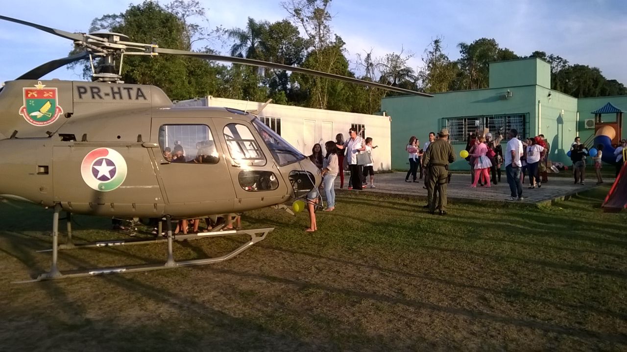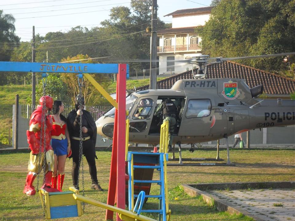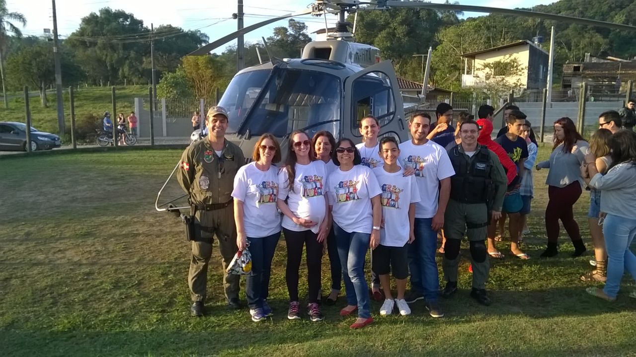 Então, em uma ação de solidariedade, no dia 27 de agosto de 2016, a Base Norte do Batalhão de Aviação da Polícia Militar de Santa Catarina participou da ação social promovida por voluntários do grupo Anjos de Plantão. Foram levados donativos, alimentos e presentes para crianças de um abrigo em Joinville.