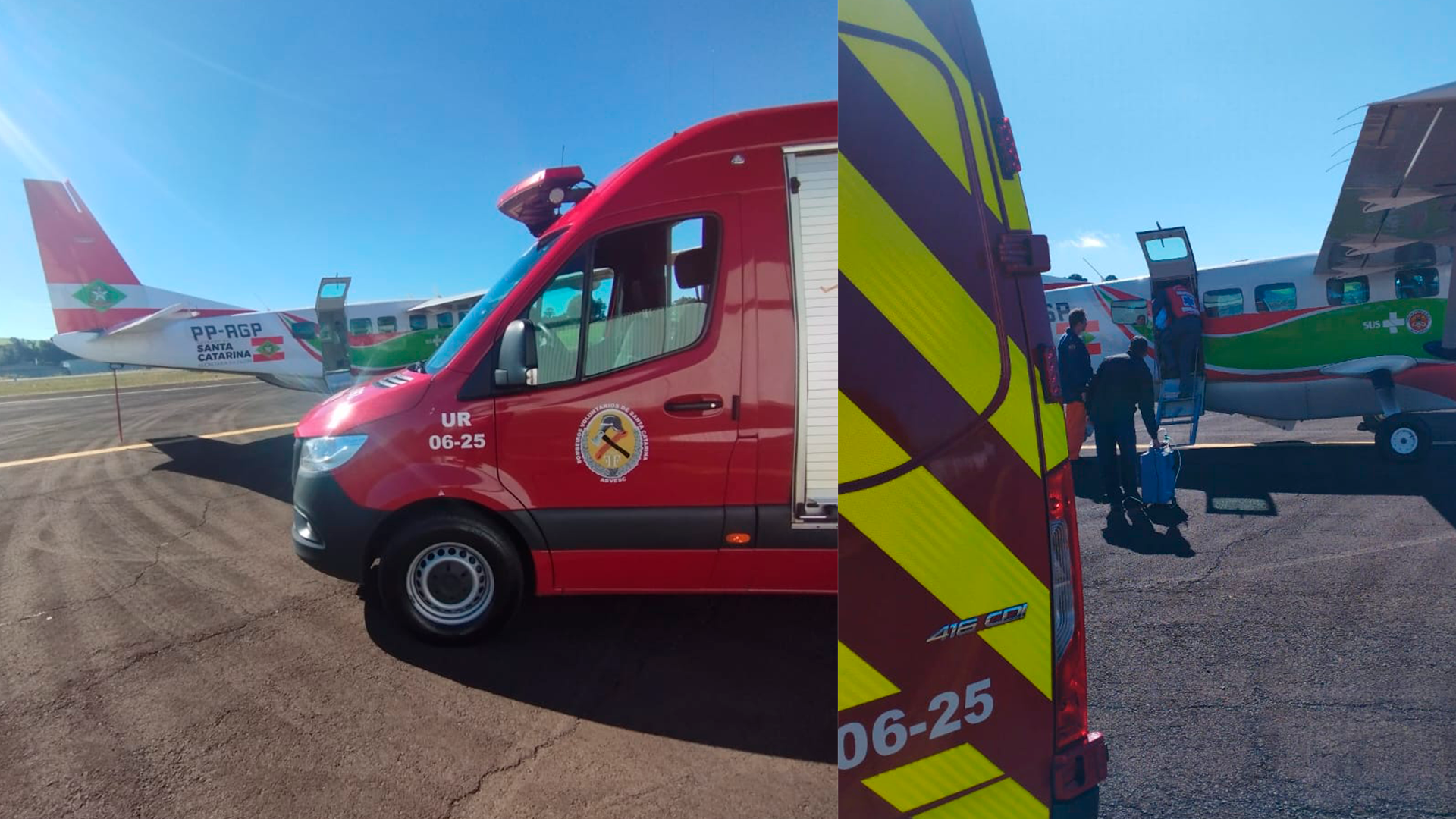 Os Bombeiros Voluntários de Concórdia foram acionados para prestar apoio no deslocamento da paciente até o aeroporto do município, onde a equipe aeromédica já aguardava. A criança foi embarcada com segurança e levada à capital catarinense para receber atendimento médico especializado.