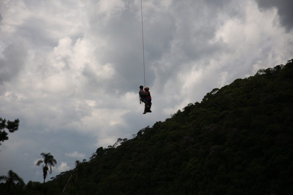 “A mulher sofreu uma queda de plano elevado, provavelmente estava na cachoeira, se desequilibrou e caiu de uma altura de aproximadamente quatro metros. Como não havia local para pouso, descemos um tripulante de rappel e a vítima foi resgata por meio da técnica McGuire”, explicou o oficial.