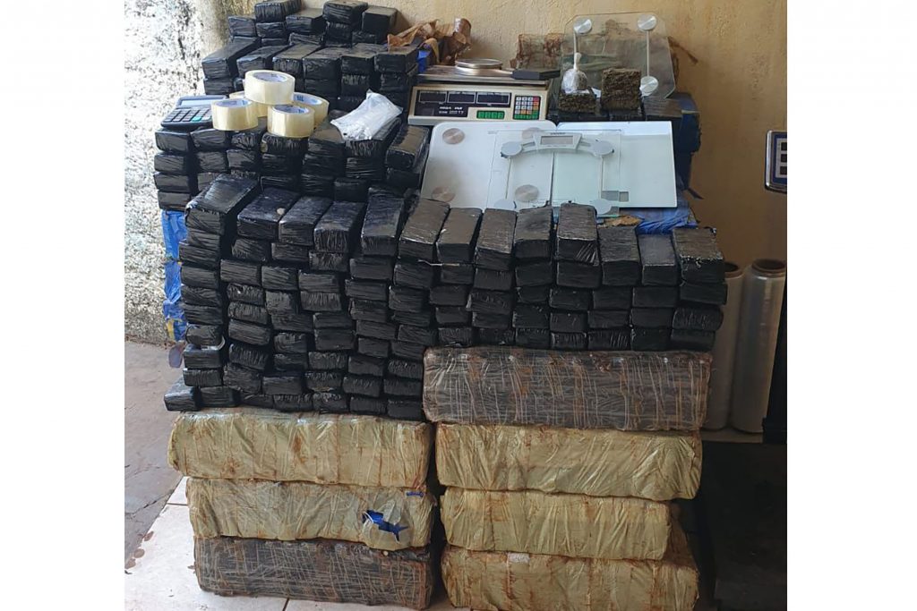 Prosseguindo na diligência, os policiais encontraram no interior da casa vários fardos e tabletes de maconha, totalizando 1,24 tonelada da droga. Localizaram também uma balança, embalagens, produtos químicos e diversos outros utensílios utilizados na manipulação de entorpecentes.