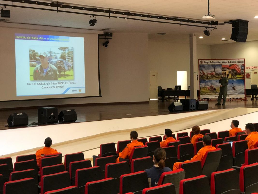 Operadores do BPMOA fazem treinamento com aeronave para Grupamento Aéreo do Corpo de Bombeiros do Distrito Federal – Foto: BPMOA