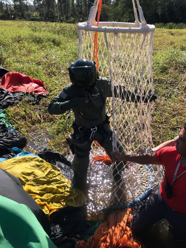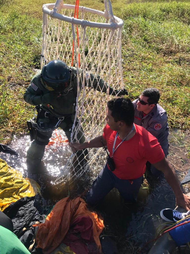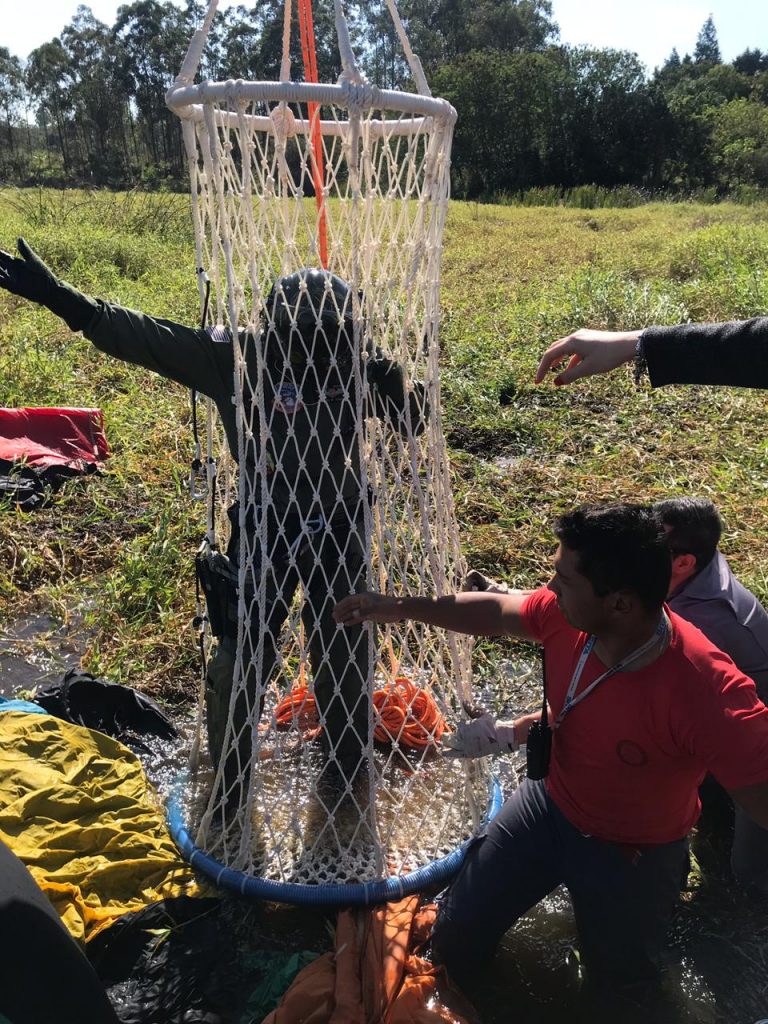 Para efetuar o resgate das vítimas foi utilizado o cesto de salvamento, sendo reitado duas vítimas por vez. Dentre as vítimas se encontrava uma criança e uma senhora que havia sido submetida a cirurgia a pouco tempo.