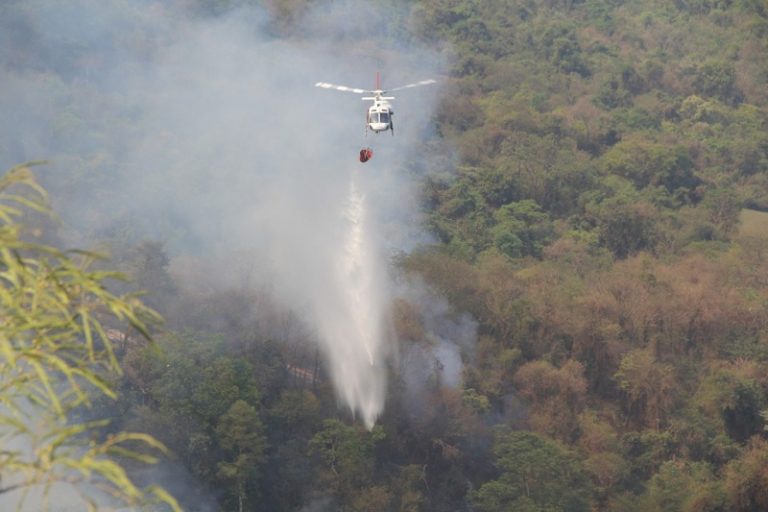 CAv/PMESP: Helicóptero Águia apoia combate a incêndio na serra de São Pedro