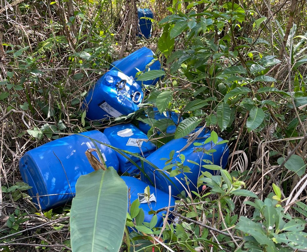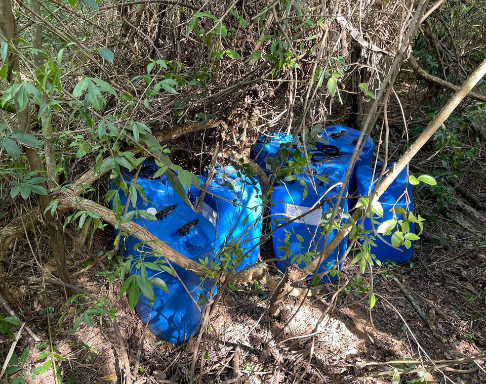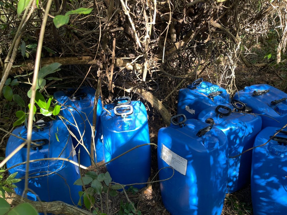 Os policiais também encontraram e apreenderam três carabinas que estavam escondidas em meio à vegetação com dois cartuchos de munição, sendo um deflagrado e outro intacto.