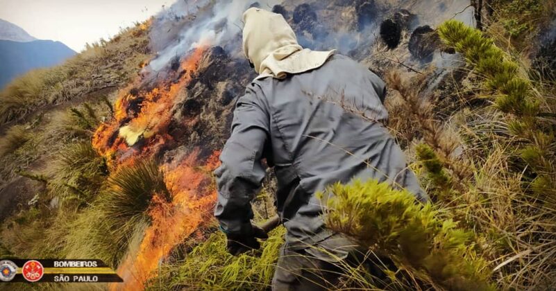 São Paulo – O Corpo de Bombeiros da Polícia Militar do Estado de São Paulo informa que um incêndio em cobertura vegetal atingiu a região conhecida como “Pico da Pedra da Mina”, que é oficialmente a quarta montanha mais alta do Brasil, e a mais alta do estado de São Paulo, com 2798 metros de altitude. Esta montanha localiza-se na Serra Fina, uma seção da serra da Mantiqueira, por sua vez uma das cadeias de montanhas mais importantes do país. A Pedra da Mina situa-se na divisa entre os Estados de Minas Gerais e São Paulo.