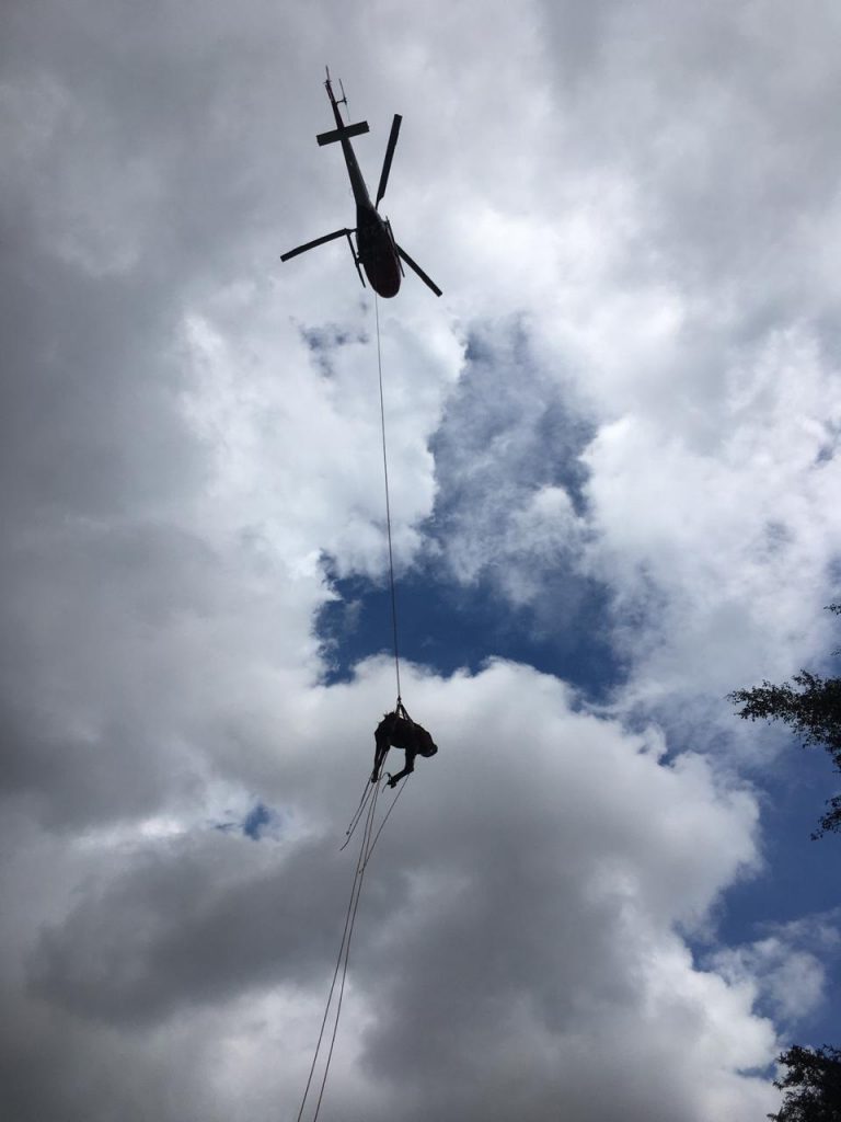 Na ocorrência houve o empenho de 02 pilotos, 03 tripulantes operacionais e 03 militares do 5º GB, além do médico veterinário.