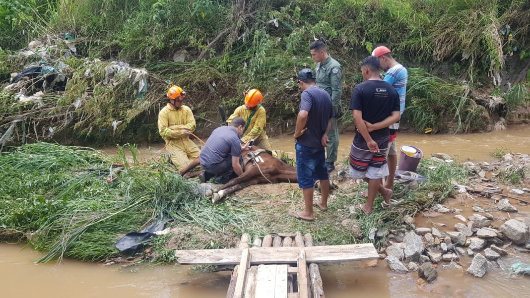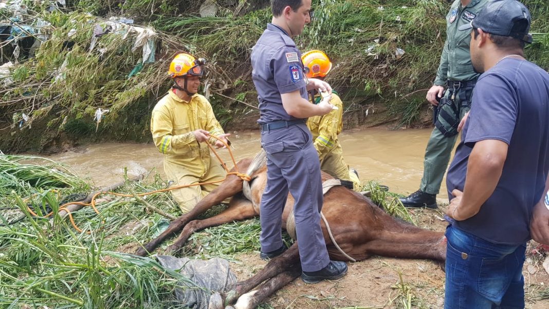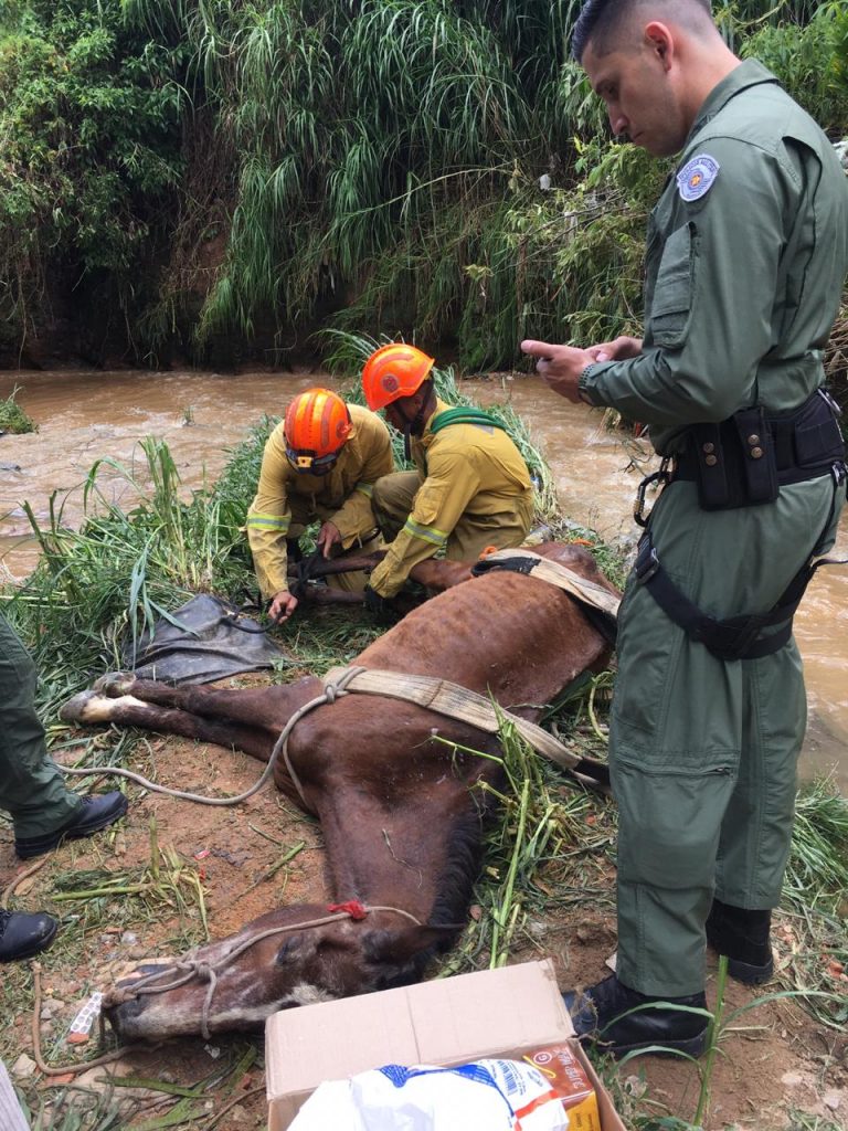 Pela especificidade do assunto, também foi acionado uma equipe do Regimento de Cavalaria 9 de Julho para ter o acompanhamento de um médico veterinário, que foi conduzido ao local da ocorrência a fim de medicar o cavalo antes da sua retirada do animal através de um sistema de cordas, evitando assim a segurança e qualquer movimentação indesejada do mesmo.