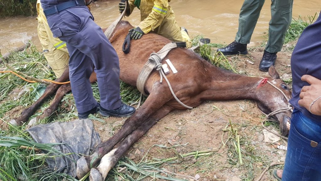 São Paulo – Na data de 03/01, a equipe do Águia 23, do Comando de Aviação da Polícia Militar de São Paulo, foi solicitada para resgate de um cavalo que havia sido surpreendido no dia anterior pelas águas de um riacho próximo após uma forte chuva, em apoio ao Corpo de Bombeiros na região de Francisco Morato.