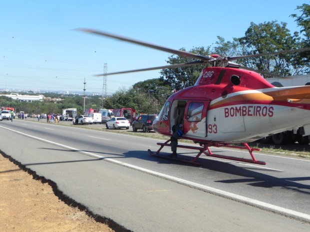 O motorista do ônibus, ficou preso às ferragens e as Equipes do CBMGO realizaram a retirada das ferragens da vítima que foi transportada pelo Helicóptero Bombeiros 1 ao Hospital de Urgências de Goiânia.