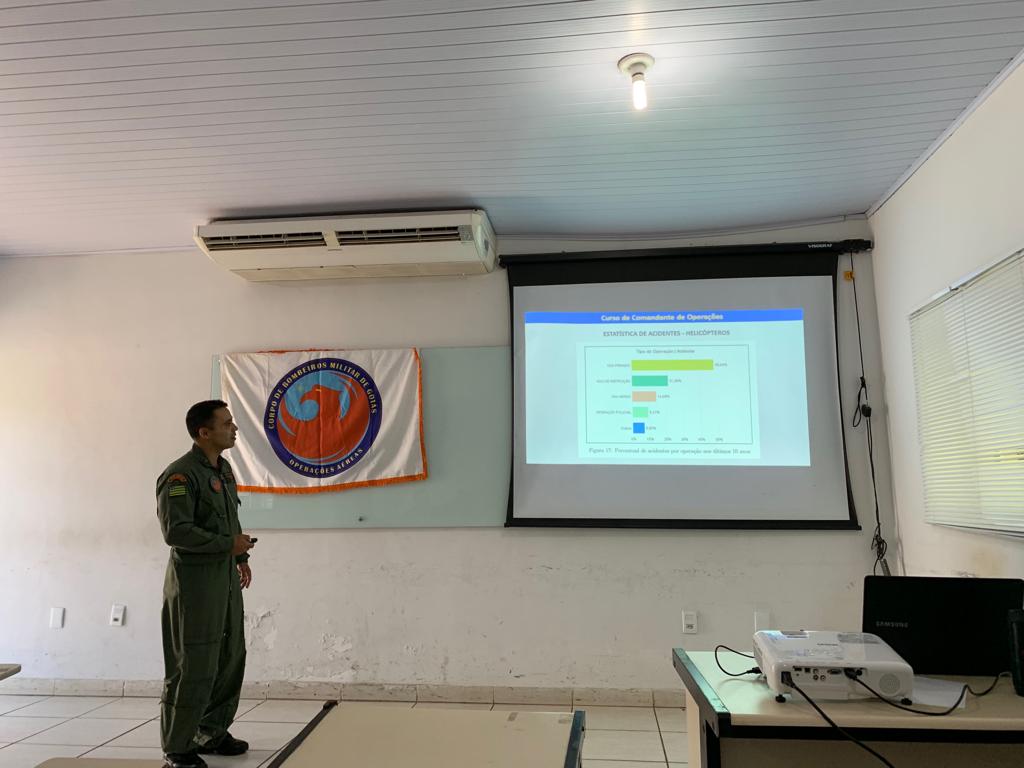 Durante o curso, que teve uma carga horária de 98 horas para os pilotos de avião e 102 para os pilotos de helicóptero, os militares tiveram aulas de Segurança de Voo, familiarização com as aeronaves operadas pelo CBMGO (Ground School), Procedimentos Operacionais Padrão, Planejamento de Voo, Introdução ao Voo por Instrumento.