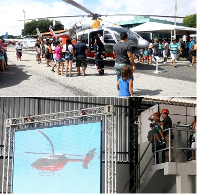 No espaço, crianças brincavam em tirolesas sob a supervisão do Corpo de Bombeiros, as pessoas assistiram a palestra de primeiros socorros, conferiam maquetes de aeronaves, aprenderam a manusear os materiais aeromédicos e se alimentaram em caminhões com opções variadas de lanches, os “food trucks”.
