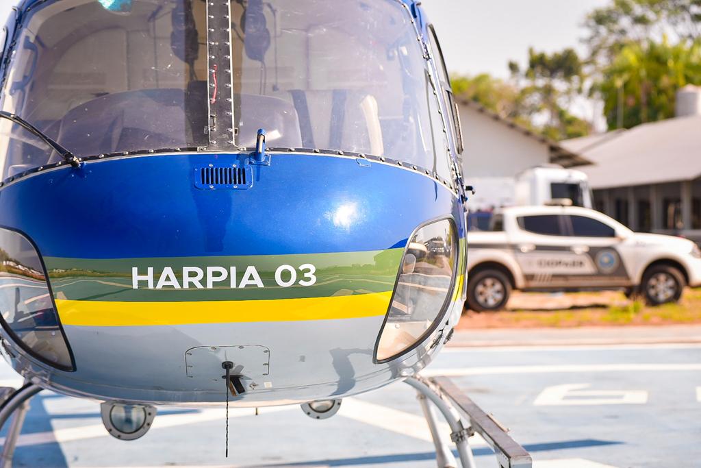 O sobrevoo foi realizado nesta quinta-feira, 17/08, no Helicóptero Harpia 3, uma aeronave AS350 doada pela Secretaria Nacional de Segurança, que chegou ao Acre em julho de 2021 para fortalecer ações de saúde, segurança e meio ambiente, com capacidade para transportar até quatro passageiros e dois tripulantes.
