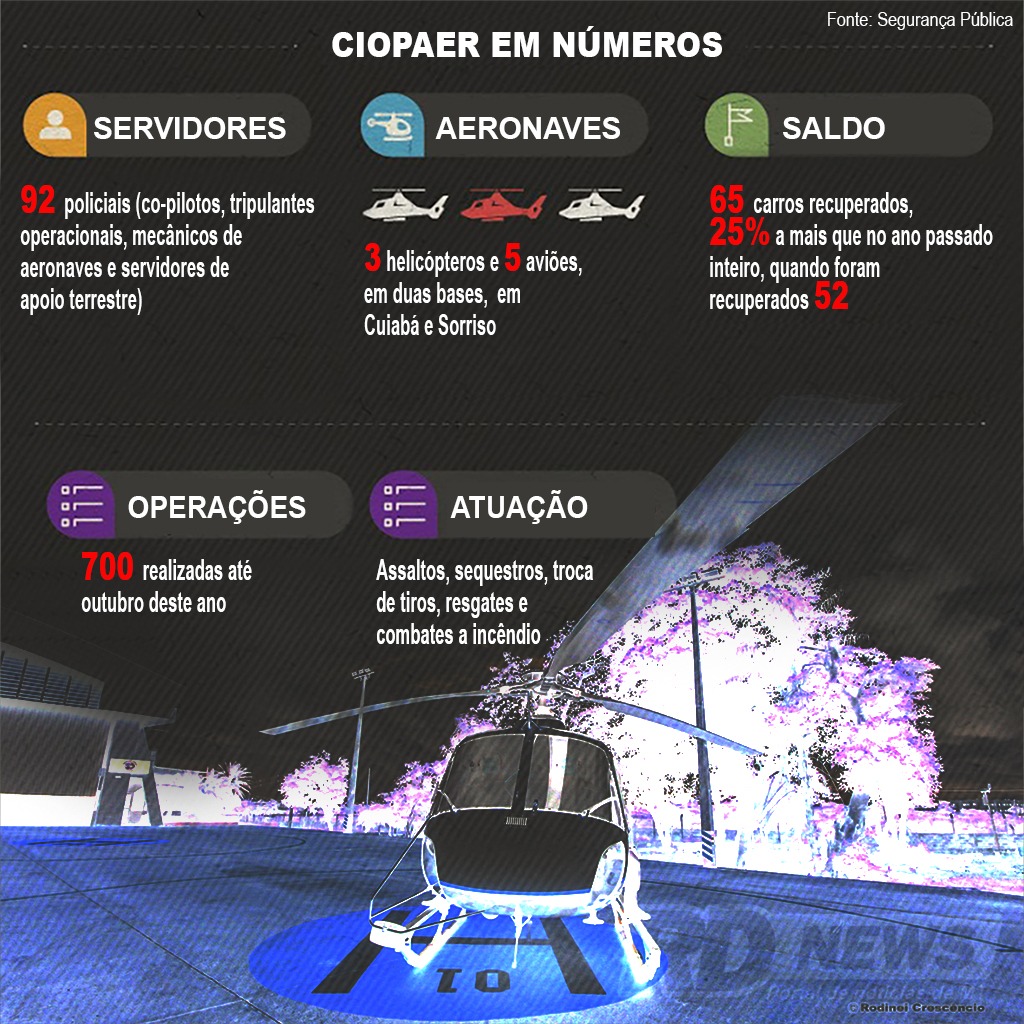 Segundo o comandante do Ciopaer, desde 2015 eles atuam em forma de patrulhamento, dando suporte aos policiais que trabalham por terra. “Em muitos casos, é impossível uma viatura em solo conseguir localizar um suspeito, ou um veículo roubado. E é aí que entramos. Do alto, temos uma visão privilegiada, e depois de visualizado é quase impossível os criminosos escaparem da ação do helicóptero”, afirma, ao explicar que a aeronave pode voar mais de 6 mil metros de altitude a 200 km/h.