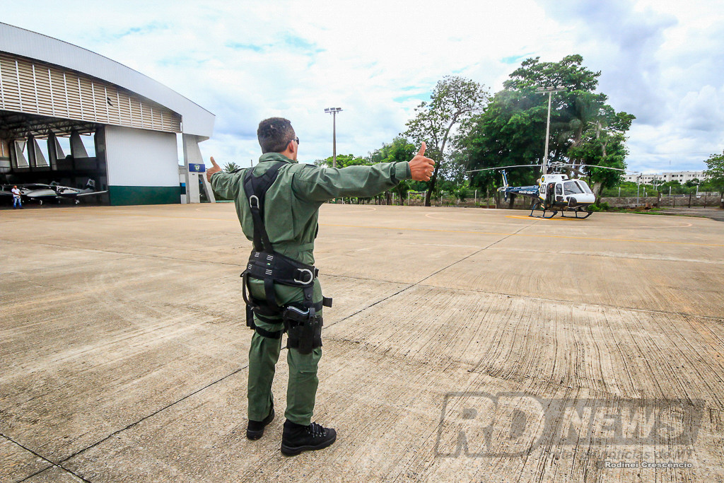 O pedido de apoio era para não perderem os ladrões de vista. Em menos de 2 segundos cinco militares embarcam e o Águia decola, na base do Aeroporto Marechal Rondon, em Várzea Grande. Com voos rasantes e policiais suspenso por um cabo de rapel armados, a equipe do Centro Integrado de Operações Áreas (Ciopaer) consegue acompanhar e apontar onde os criminosos estavam escondidos.