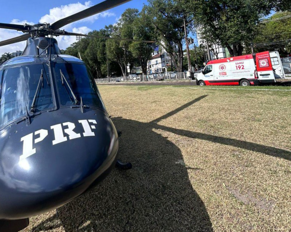 O acionamento ocorreu após um grave sinistro em Escada, na Zona da Mata Sul de Pernambuco, onde um veículo de passeio capotou e saiu da pista. A aeronave da PRF pousou em uma área gramada, garantindo agilidade no atendimento.