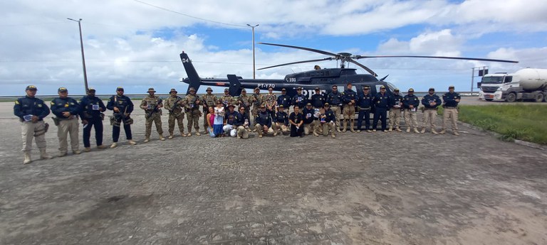 Helicóptero, viaturas quatro rodas, uma viatura blindada para operações de alto risco, uma viatura de transporte de cães k-9, ônibus e motocicletas do moto policiamento, além dos policiais rodoviários federais e familiares fizeram parte do evento que uniu ação educativa e história da PRF.