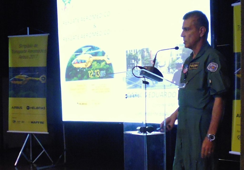 Cel PM Falconi do GRPAe fala sobre “Resgate Aeromédico Público e Privado” no Simpósio Airbus