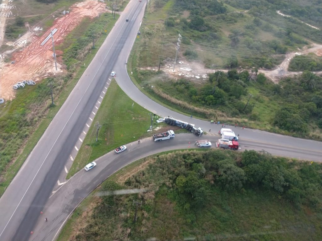 Bahia – O Grupamento Aéreo (GRAER) da Polícia Militar e o Corpo de Bombeiros socorreram uma família presa em ferragens, após tombamento de caminhão. O acidente ocorreu, na tarde de sexta-feira (22), no Polo Industrial de Camaçari.