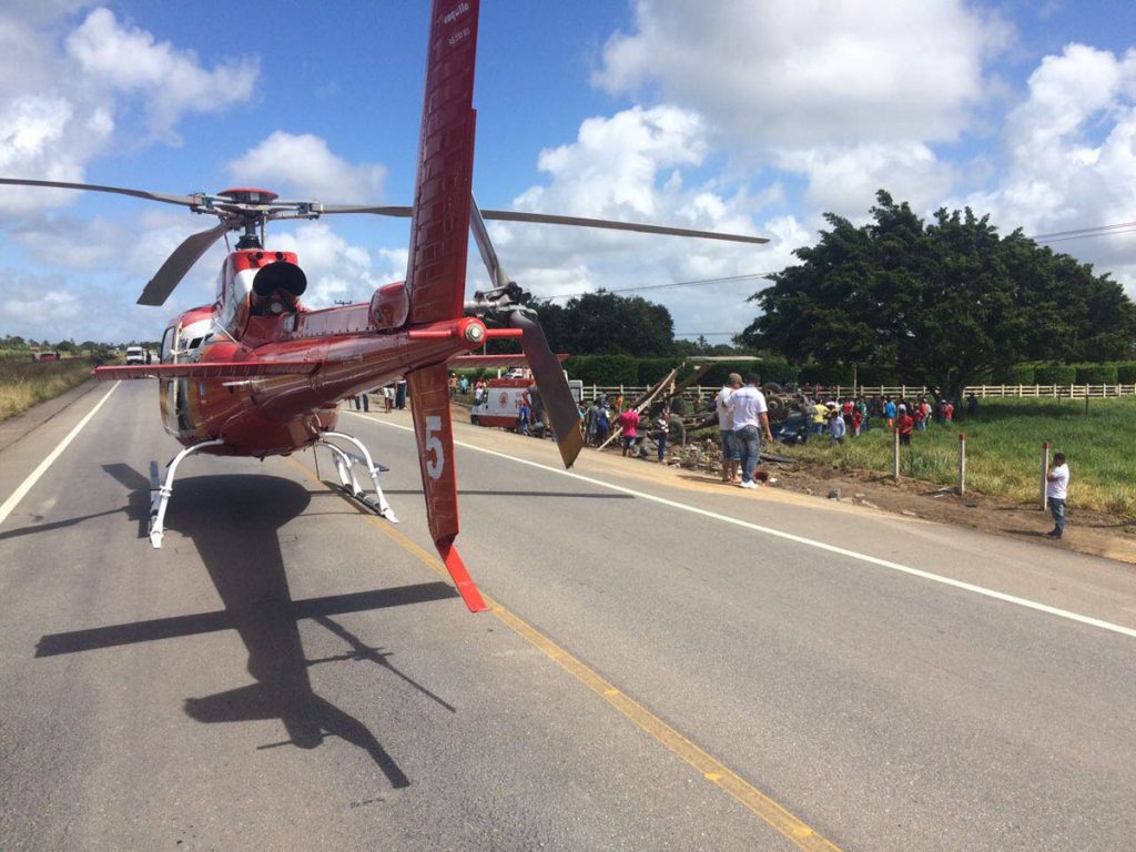 Alagoas – Uma equipe do Grupamento Aéreo da Secretaria de Estado da Segurança Pública (SSP) realizou na manhã desta segunda-feira (18) o atendimento às vitimas de um capotamento ocorrido no trecho que dá acesso à cidade de Junqueiro na BR-101.
