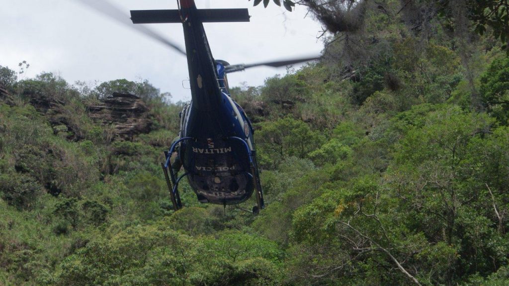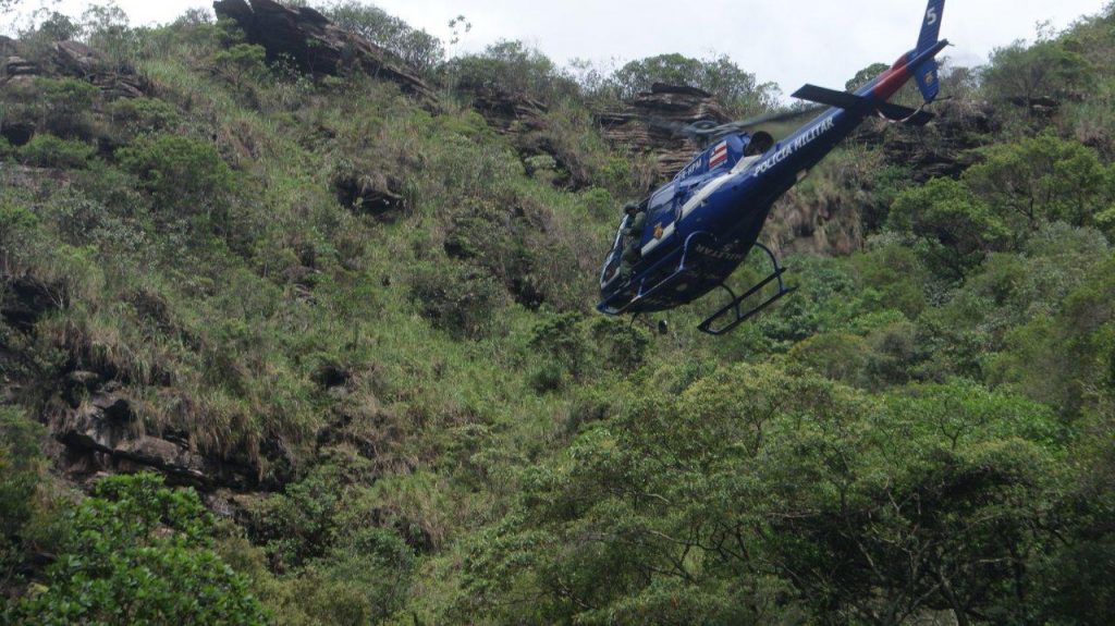 Bahia – No dia 21 de janeiro o Guardião 05 decolou para apoiar o 11º GBM/Lençóis do Corpo de Bombeiros no salvamento de um turista que, ao pular de uma rocha de 18 metros de altura, sofreu lesão grave. No aeroporto de Lençóis a equipe do Guardião encontrou-se com o Cap BM Murilo (Corpo de Bombeiros) e com a Ten PM Okasawa (CIPPA – Companhia Independente de Polícia de Proteção Ambiental), Oficiais responsáveis pela missão do resgate terrestre.