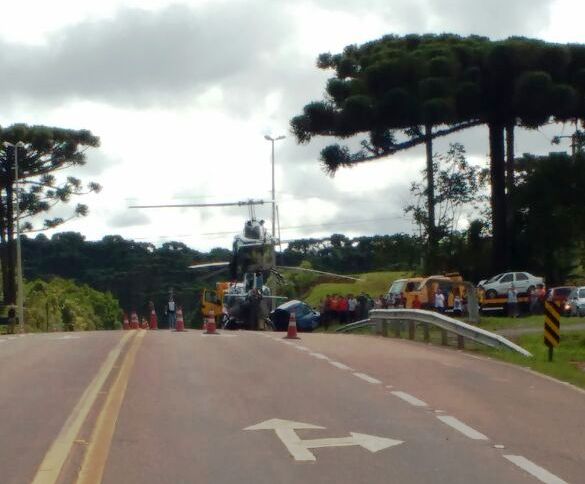 “Fomos informados de uma colisão lateral envolvendo múltiplas vítimas no trevo de acesso Quitandinha (PR). As duas aeronaves foram acionadas e deram o suporte avançado para as pessoas que estavam mais graves. No local foi feita a estabilização das vítimas, sendo uma encaminhada ao Hospital do Trabalhador e outra ao Angelina Caron”, explica o tenente Lazaroto.