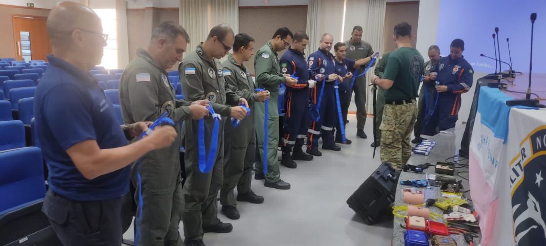 Espírito Santo – Durante os dias 07 a 10 de novembro, operadores do Núcleo de Operações Táticas Aéreas (NOTAER) e enfermeiros do Serviço de Atendimento Móvel de Urgência (SAMU 192) participaram de instrução de Atendimento Pré-Hospitalar (APH) Tático Policial, ministrada pela Coordenadoria de Recursos Especiais (Core). As aulas aconteceram no auditório do Quartel do Comando Geral da Polícia Militar do Espírito Santo (PMES), em Vitória.