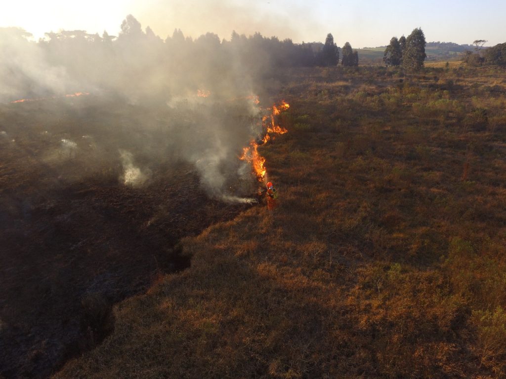 Drone ajuda bombeiros no combate a incêndio em vegetação na cidade de Chapecó